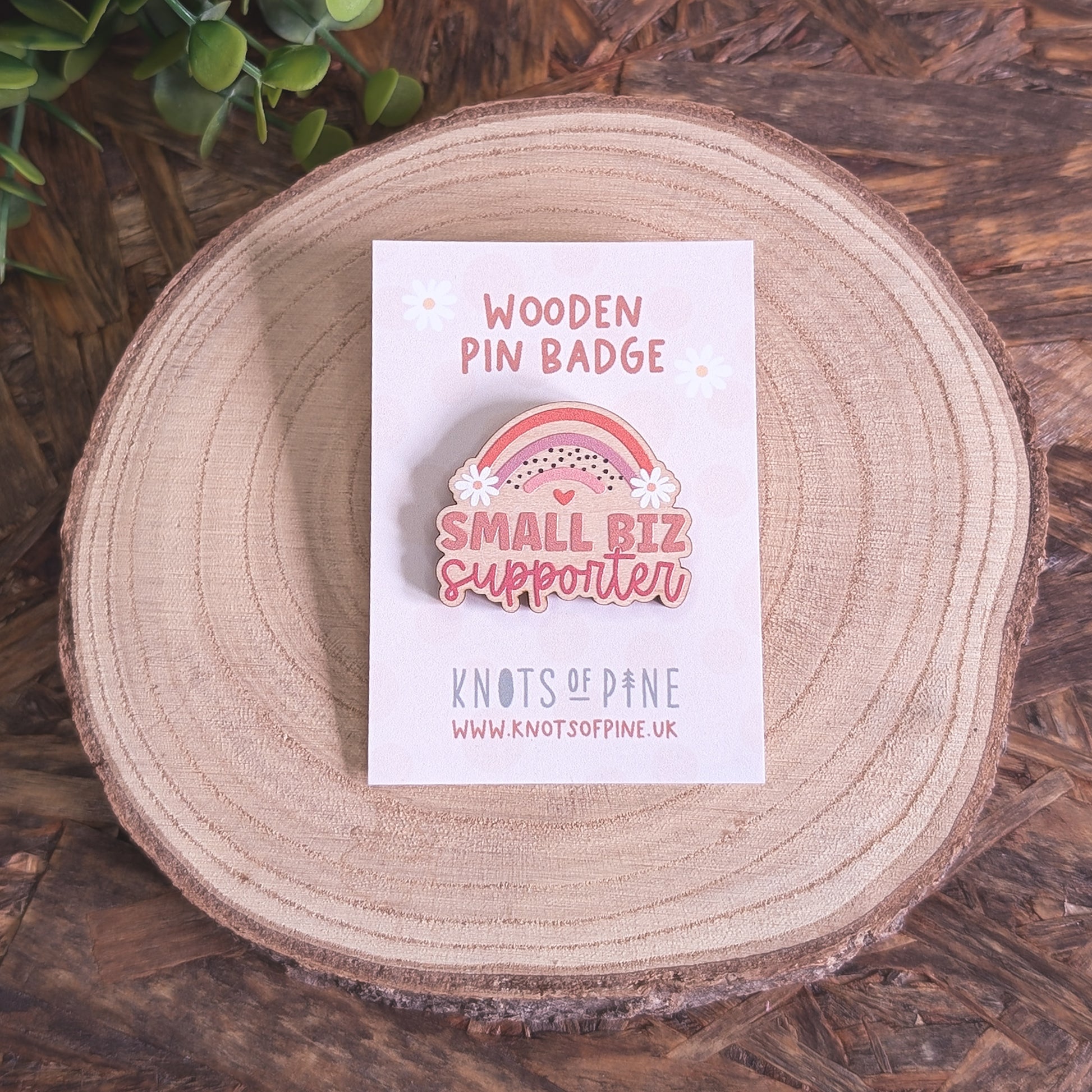 Show your support for small businesses with these quirky and playful small biz supporter wooden pin badges!
